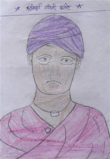Kranti Surya Raghoji Bhangare Shortlisted from Art contest no. 3 for all Ashramshalas Keywords: kranti Surya Raghoji Bhangare , brave warrior , turban , locket View Portfolio icon Share Facebook Twitter Whats App Pinterest Description -- Art Number 26668 Artwork Title Kranti Surya Raghoji Bhangare Artist Name Sumit Gedam Medium Pencil & Color Pencil on Paper Size 11.43 x 8.26 inches (29.0322 x 20.9804 cm) Information Sumit Gedam (class 8), Talaiguda Ashramshala, Kinwat PO - Shortlisted from Art contest no. 3 for all Ashramshalas of Tribal Development Department, Govt. of Maharashtra