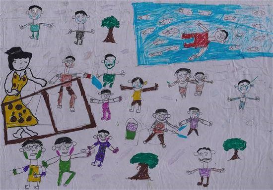 Festival of Holi Shortlisted from Art contest no. 3 for all Ashramshalas Keywords: festival of Holi , Hindu celebration , colors festival , water gun , happy children , fish tank , colorful water View Portfolio icon Share Facebook Twitter Whats App Pinterest Description -- Art Number 26688 Artwork Title Festival of Holi Artist Name Rohini Ghodmare Medium Sketch Pen & Pencil on Paper Size 11.02 x 14.98 inches (27.9908 x 38.0492 cm) Information Rohini Ghodmare (class 5), Jambhulghat Ashramshala, Chimur PO - Shortlisted from Art contest no. 3 for all Ashramshalas of Tribal Development Department, Govt. of Maharashtra