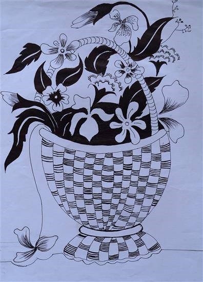 Flower Basket Shortlisted from Art contest no. 3 for all Ashramshalas Keywords: flower basket , pen art , black pen , basket , leaves , buds , decorative leaves View Portfolio icon Share Facebook Twitter Whats App Pinterest Description -- Art Number 26752 Artwork Title Flower Basket Artist Name Vaishali Tubada Medium Pen on Paper Size 14.56 x 10.62 inches (36.9824 x 26.9748 cm) Information Vaishali Tubada (class 9), Dhamangaon Ashramshala, Dahanu PO - Shortlisted from Art contest no. 3 for all Ashramshalas of Tribal Development Department, Govt. of Maharashtra
