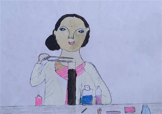 Girl studying Science experiment Shortlisted from Art contest no. 3 for all Ashramshalas Keywords: girl , Science experiment , lab coat , test tube , flask , chemical , pencil , notebook View Portfolio icon Share Facebook Twitter Whats App Pinterest Description -- Art Number 26757 Artwork Title Girl studying Science experiment Artist Name Bhavesh Balashi Medium Mixed Media on Paper Size 10.62 x 14.56 inches (26.9748 x 36.9824 cm) Information Bhavesh Balashi (class 7), Gowade Ashramshala, Dahanu PO - Shortlisted from Art contest no. 3 for all Ashramshalas of Tribal Development Department, Govt. of Maharashtra