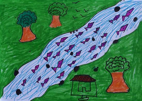Fish in River Shortlisted from Art contest no. 3 for all Ashramshalas Keywords: fish in river , greenery , aquatic , pick fishes , rocks , roof tile home , waterflow , lines , grass View Portfolio icon Share Facebook Twitter Whats App Pinterest Description -- Art Number 26784 Artwork Title Fish in River Artist Name Saniya Pungati Medium Sketch Pen on Paper Size 8.26 x 11.81 inches (20.9804 x 29.9974 cm) Information Saniya Pungati (class 9), Laheri Ashramshala, Bhamragad PO - Shortlisted from Art contest no. 3 for all Ashramshalas of Tribal Development Department, Govt. of Maharashtra