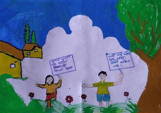 Educate girl child Shortlisted from Art contest no. 3 for all Ashramshalas Keywords: educate girl child , trees , roof tile home , siblings , social awareness charts , red flower , grass View Portfolio icon Share Facebook Twitter Whats App Pinterest Description -- Art Number 26798 Artwork Title Educate girl child Artist Name Komal Gurnule Medium Poster colour on Paper Size 12 x 16.53 inches (30.48 x 41.9862 cm) Information Komal Gurnule (class 8), Jaravandi Ashramshala, Bhamragad PO - Shortlisted from Art contest no. 3 for all Ashramshalas of Tribal Development Department, Govt. of Maharashtra