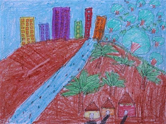 Home in city Shortlisted from Art contest no. 3 for all Ashramshalas Keywords: home in city , street , mountain , banana trees , temples , grass , many floors View Portfolio icon Share Facebook Twitter Whats App Pinterest Description -- Art Number 26860 Artwork Title Home in city Artist Name Pinti Panage Medium Mixed Media on Paper Size 10.62 x 14.56 inches (26.9748 x 36.9824 cm) Information Pinti Panage (class 6), Murambi Ashramshala, Nashik PO - Shortlisted from Art contest no. 3 for all Ashramshalas of Tribal Development Department, Govt. of Maharashtra