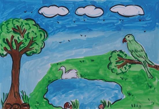 Scenery 15 Shortlisted from Art contest no. 3 for all Ashramshalas Keywords: landscape , nature , scenery , parrot , bird View Portfolio icon Share Facebook Twitter Whats App Pinterest Description -- Art Number 26863 Artwork Title Scenery 15 Artist Name Ajay Torkad Medium Poster colour on Paper Size 8.27 x 11.69 inches (21.0058 x 29.6926 cm) Information Ajay Torkad (class 8), Khairkheda Ashramshala, Pusad PO - Shortlisted from Art contest no. 3 for all Ashramshalas of Tribal Development Department, Govt. of Maharashtra