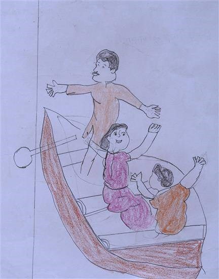 Children enjoying boat journey Shortlisted from Art contest no. 3 for all Ashramshalas Keywords: Children enjoying , boat journey , happy siblings , sitting in boat View Portfolio icon Share Facebook Twitter Whats App Pinterest Description -- Art Number 26882 Artwork Title Children enjoying boat journey Artist Name Rina Netam Medium Oil pastel and graphite pencil on Paper Size 11.81 x 8.26 inches (29.9974 x 20.9804 cm) Information Rina Netam (class 8), Kadikasa Ashramshala, Deori PO - Shortlisted from Art contest no. 3 for all Ashramshalas of Tribal Development Department, Govt. of Maharashtra
