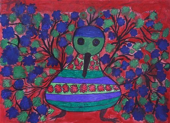 Peacock bird Shortlisted from Art contest no. 3 for all Ashramshalas Keywords: peacock bird , India's National bird , blue bird , colorful , design on peacock , spread feathers , vahana of Kartikeya View Portfolio icon Share Facebook Twitter Whats App Pinterest Description -- Art Number 26956 Artwork Title Peacock bird Artist Name Surabhi Kale Medium Sketch Pen on Paper Size 11.02 x 13.97 inches (27.9908 x 35.4838 cm) Information Surabhi Kale (class 9), Tembrusonda Ashramshala, Dharani PO - Shortlisted from Art contest no. 3 for all Ashramshalas of Tribal Development Department, Govt. of Maharashtra