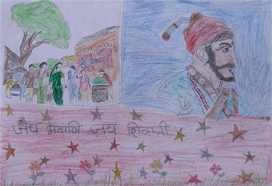 Visit to historical place Shortlisted from Art contest no. 3 for all Ashramshalas Keywords: visit to historical place , designed window , bars , traditional costumes , vegetable seller , Chhatrapati Shivaji Maharaj , royal costumes , necklace , crest View Portfolio icon Share Facebook Twitter Whats App Pinterest Description -- Art Number 27035 Artwork Title Visit to historical place Artist Name Kavita Lokhande Medium Oil pastel and graphite pencil on Paper Size 8.26 x 11.81 inches (20.9804 x 29.9974 cm) Information Kavita Lokhande (class 9), Musalwadi Ashramshala, Akola PO - Shortlisted from Art contest no. 3 for all Ashramshalas of Tribal Development Department, Govt. of Maharashtra