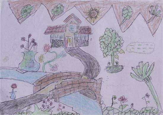 My home near bridge Shortlisted from Art contest no. 4 for all Ashramshalas Keywords: my home , near bridge , mountain , Sun , street , water flow , red flower , window , home View Portfolio icon Share Facebook Twitter Whats App Pinterest Description -- Art Number 27425 Artwork Title My home near bridge Artist Name Karina Chaure Medium Oil Pastel on Paper Size 8.26 x 12.2 inches (20.9804 x 30.988 cm) Information Karina Chaure (class 4), Varsa Ashramshala, Dhule PO - Shortlisted from Art contest no. 4 for all Ashramshalas of Tribal Development Department, Govt. of Maharashtra