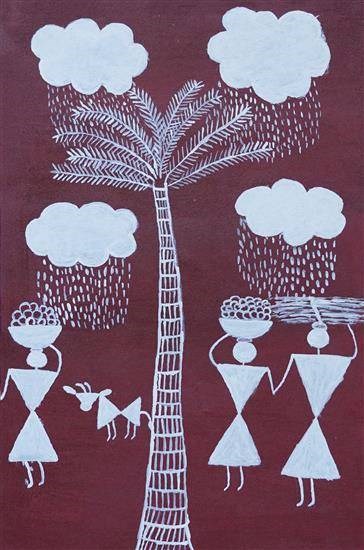 Daily chores of tribals Honorable mention from Art contest no. 4 for all Ashramshalas Keywords: daily chores of tribals , coconut tree , clouds , grass bunch carrier , cattle , a calf , tribal life style , season , raining , rain drops View Portfolio icon Share Facebook Twitter Whats App Pinterest Description -- Art Number 27661 Artwork Title Daily chores of tribals Artist Name Priti Aaglave Medium Acrylic colours on Paper Size 11.81 x 8.26 inches (29.9974 x 20.9804 cm) Information Priti Aaglave (class 7), Kothali Ashramshala, Akola PO - Honorable mention from Art contest no. 4 for all Ashramshalas of Tribal Development Department, Govt. of Maharashtra
