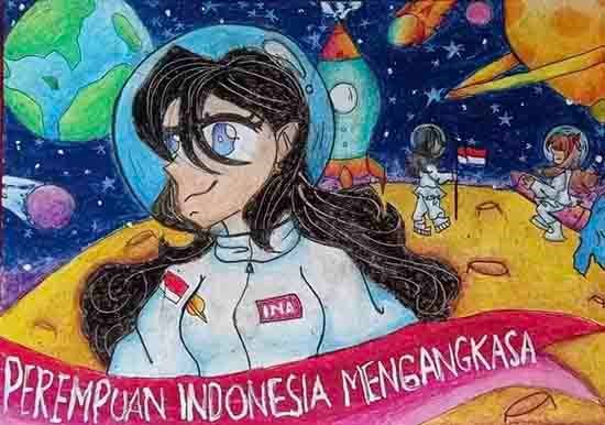 Woman Astronaut painting by Nada Nufasha Arriza Damanik Keywords: Woman astronaut , astronaut , outer space , universe , woman View Portfolio icon Share Facebook Twitter Whats App Pinterest Description -- Art Number 27856 Artwork Title Woman Astronaut Artist Name Nada Nufasha Arriza Damanik Medium Crayons on Paper Size 11.8 x 15.7 inches (29.972 x 39.878 cm) Information Woman astronaut go to mars and see beautiful universe out there.