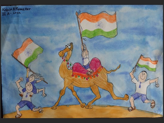 Azadi ka amrit mohotsav, painting by Child Artist Kabir Ramekar View Portfolio icon Share Facebook Twitter Whats App Pinterest Description -- Art Number 27875 Artwork Title Azadi ka amrit mohotsav Artist Name Kabir Ramekar Medium Mixed Media on Paper Information Kids enjoying Azadi ka Amrit Mohotsav.