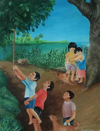 Memories of holidays painting by Ameya Karan Keywords: figurative , children , memories , memories of holiday , holiday memories , childhood memories , mesmerising beauty , happiness View Portfolio icon Share Facebook Twitter Whats App Pinterest Description -- Art Number 28144 Artwork Title Memories of holidays Artist Name Ameya Karan Medium Acrylic on Paper Size 14 x 11 inches (35.56 x 27.94 cm) Information Childhood memories are very important in our lives. It makes us remember the best times of our lives. They shape our thinking and future. This painting signifies the mesmerising beauty of the childhood memories that we cherished in the olden days ..the happiness of being with our friends and family. Those days devoid of these stress and tensions. These are the days which we must foster in our minds