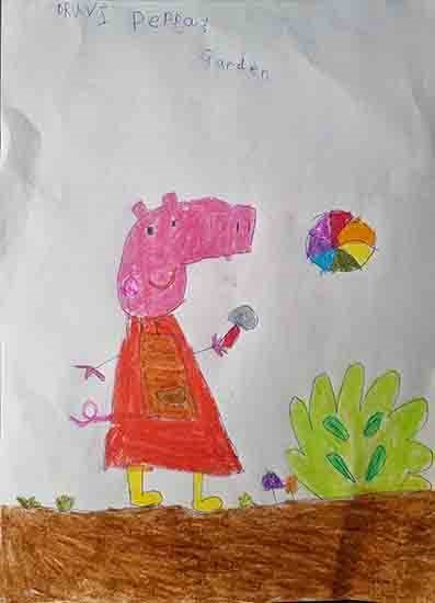 Peppa Pig in the garden painting by Druvi Arvind Keywords: Peppa Pig , cartoon , favourite cartoon , kids View Portfolio icon Share Facebook Twitter Whats App Pinterest Description -- Art Number 28185 Artwork Title Peppa Pig in the garden Artist Name Druvi Arvind Medium Colour pencils on Paper Size 11.69 x 8.27 inches (29.6926 x 21.0058 cm) Information The kids favourite Peppa in the garden playing with her ball.