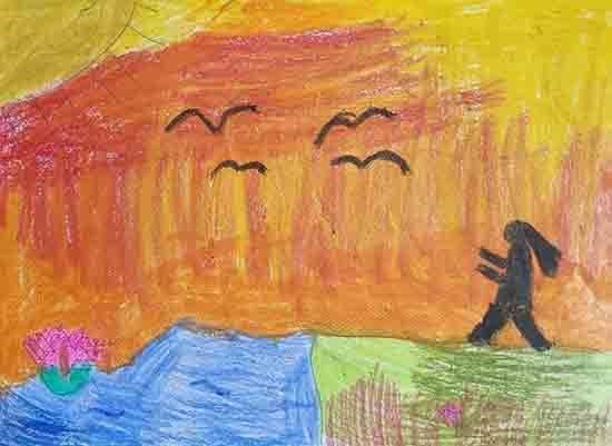 The happy girl in a sunset sky painting by Druvi Arvind Keywords: happy girl , sunset sky , landscape , girl , sky , beauty of a sunset , happy girl View Portfolio icon Share Facebook Twitter Whats App Pinterest Description -- Art Number 28189 Artwork Title The happy girl in a sunset sky Artist Name Druvi Arvind Medium Watercolour on Paper Size 8.27 x 11.69 inches (21.0058 x 29.6926 cm) Information A sunset sky is a beautiful view. In this picture, the one enjoying the beauty of a sunset sky is an young, happy girl.