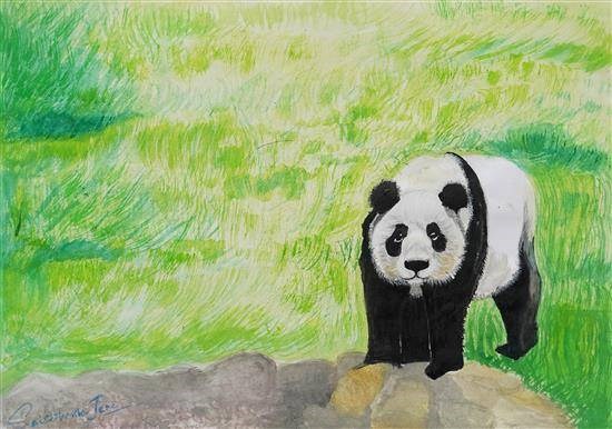 Peaceful place of Panda Shortlisted in Khula Aasmaan painting contest Keywords: panda , animal , peaceful place , natural habitat of Panda , lush greenery View Portfolio icon Share Facebook Twitter Whats App Pinterest Description -- Art Number 28196 Artwork Title Peaceful place of Panda Artist Name Sai Sidhartha Jena Medium Watercolour on Paper Size 8.27 x 11.69 inches (21.0058 x 29.6926 cm) Information "Peaceful place of Panda" is a beautiful and serene artwork that captures the essence of a natural habitat of Panda. The artwork features a Panda standing surrounded by lush greenery . The panda looks peaceful and content, as if it has found its own little corner of paradise. This painting by child artist Saisidhartha Jena (14 years), Shortlisted in Khula Aasmaan art competition for July to September 2023.