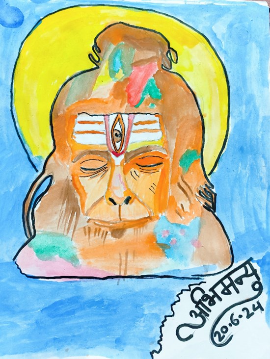 Hanuman ji, painting by Child Artist Abhimaneyu Singh View Portfolio icon Share Facebook Twitter Whats App Pinterest Description -- Art Number 28426 Artwork Title Hanuman ji Artist Name Abhimaneyu Singh Medium Water colour and pencil on Sheet Information Hanuman ji