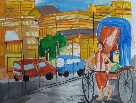Street, painting by Child Artist Arnav Dulal Ghosh