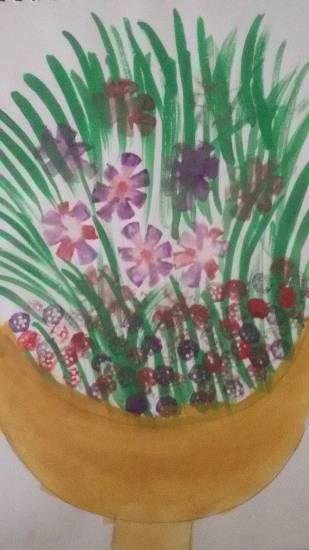 Flower pot, painting by Child Artist Jasika Mandar Sawant