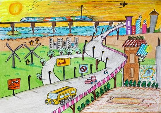 Cityscape, painting by Child Artist Advait Ravi Sapkal