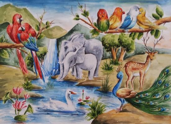 Wild Life, painting by Child Artist Krisha Amish Shah