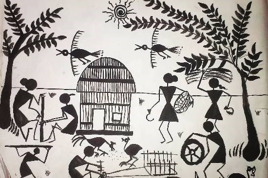 Warali Village, painting by Child Artist Tanmay Sameer Karve