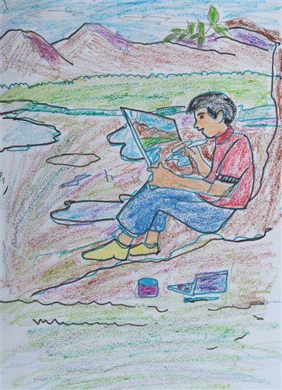 View Details My Favorite Hobby - Drawing Oil Pastel and Sketch pen on Paper 8.27 x 11.69 inches 21.01 x 29.69 cm