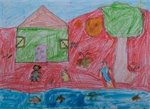 View Details My lovely village Oil Pastel and Sketch pen on Paper 11.69 x 16.53 inches 29.69 x 41.99 cm