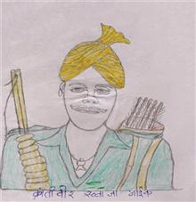 View Details Revolutionary Khajya Naik Oil pastel and graphite pencil on Paper 11.43 x 8.26 inches 29.03 x 20.98 cm