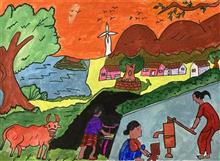 View Details Life in a village - 1 Poster Colors & Sketch Pen on Paper 10.64 x 14.58 inches 27.03 x 37.03 cm