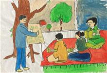 View Details Teacher with students Poster Colors & Sketch Pen on Paper 8.26 x 11.02 inches 20.98 x 27.99 cm