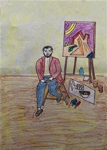 View Details Painter with painting Oil Pastel and Sketch pen on Paper 16.53 x 11.81 inches 41.99 x 30 cm