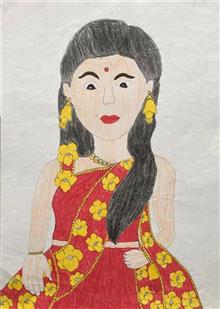 View Details Portrait of lady Oil Pastel and Sketch pen on Paper 14.58 x 10.62 inches 37.03 x 26.97 cm