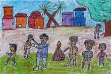 View Details Children celebrating Holi Oil Pastel and Sketch pen on Paper 8.26 x 11.41 inches 20.98 x 28.98 cm