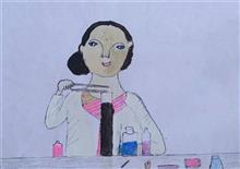 View Details Girl studying Science experiment Mixed Media on Paper 10.62 x 14.56 inches 26.97 x 36.98 cm