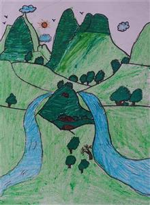 View Details River flow through mountain Oil Pastel and Sketch pen on Paper 14.56 x 10.62 inches 36.98 x 26.97 cm