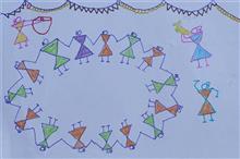 View Details Group dance of tribal people Oil Pastel and Sketch pen on Paper 8.02 x 11.22 inches 20.37 x 28.5 cm