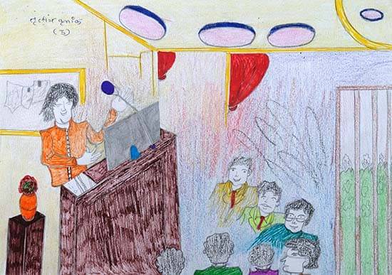 View Details Children enjoying puppet show Poster Colors & Sketch Pen on Paper 8.26 x 11.81 inches 20.98 x 30 cm