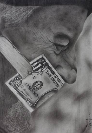 View Details A penny saved is a penny earned Graphite on Cartridge Paper 11.69 x 16.53 inches 29.69 x 41.99 cm