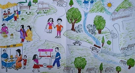 View Details River bank area Poster Colors & Sketch Pen on Paper 10.62 x 14.56 inches 26.97 x 36.98 cm