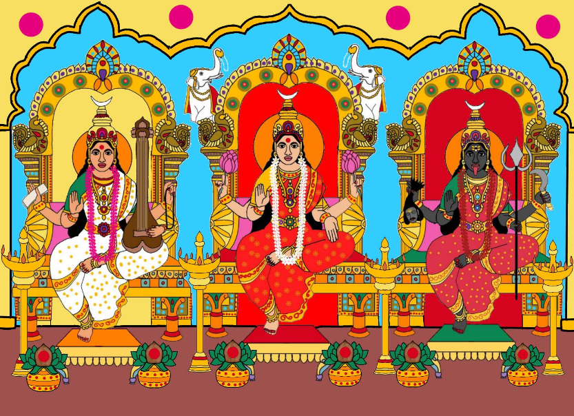 View Details Kalamkari art of Sarswati Devi Sketch pens and Glitter pens on Paper 16.5 x 11.7 inches 41.91 x 29.72 cm