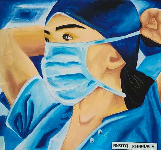 View Details Corona Warriors Oil Pastel and Sketch pen on Paper 14.56 x 10.62 inches 36.98 x 26.97 cm