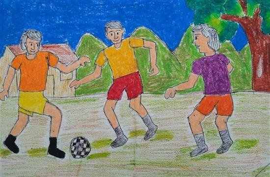 View Details Foot ball players Oil Pastel and Sketch pen on Paper 8.27 x 11.69 inches 21.01 x 29.69 cm