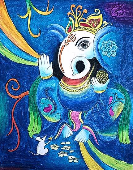 View Details SPLASH PAINTING of LORD GANESHA Charcoal & Acrylic on Canvas board 14 x 18 inches 35.56 x 45.72 cm