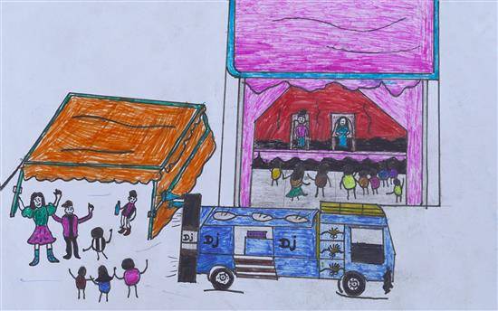 View Details Girl purchasing balloon Oil Pastel and Sketch pen on Paper 8.26 x 11.81 inches 20.98 x 30 cm