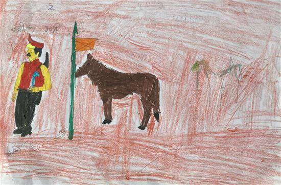 View Details Story from Arabian Nights Oil Pastel and Sketch pen on Paper 8.26 x 11.43 inches 20.98 x 29.03 cm
