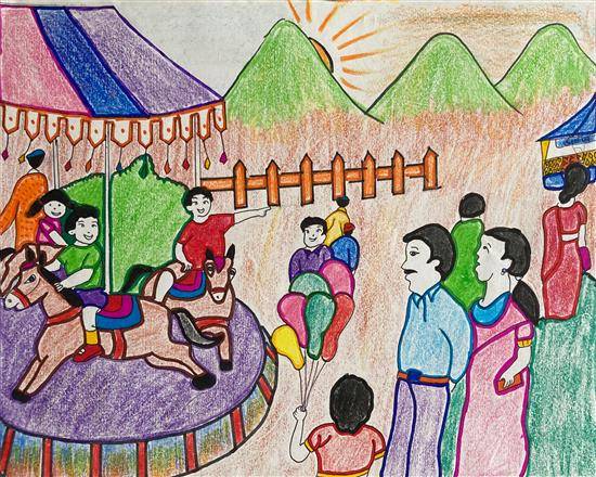 View Details Machattu Mamangam Festival Watercolour & Colour pencil on Paper 8.3 x 11.7 inches 21.08 x 29.72 cm