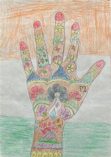View Details Mehandi Design Oil pastel and graphite pencil on Paper 6.33 x 9.46 inches 16.08 x 24.03 cm