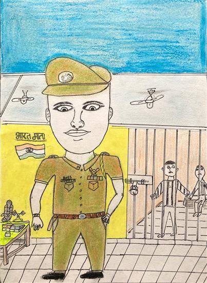 View Details Police Inspector Oil Pastel and Sketch pen on Paper 14.56 x 10.62 inches 36.98 x 26.97 cm