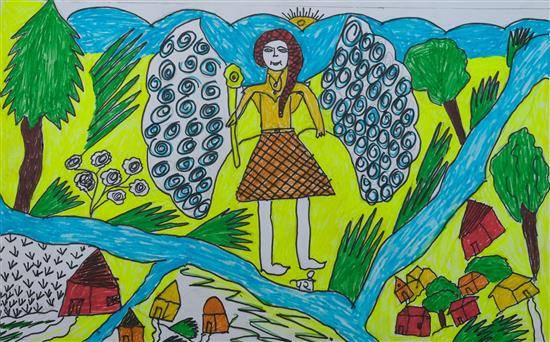 View Details Jay jay he Bharat desha Oil pastel and pen on Paper 8.26 x 11.61 inches 20.98 x 29.49 cm