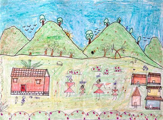 View Details Children's Diwali feast Poster Colors & Sketch Pen on Paper 10.62 x 14.96 inches 26.97 x 38 cm
